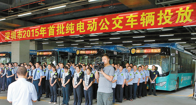 2015年首批新增投放的純電動公交車于16日上路運營,共60輛,將服務于東部公交公司的M203(布吉寶頂總站-西麗動物園)和M358線(布吉寶頂總站-寶安桃源居),此后,這兩條線路將改為全部由純電動大巴運營。
