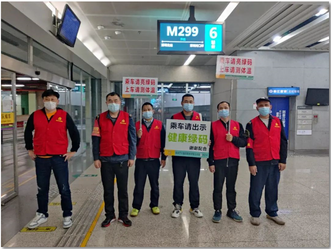 松湖車隊黨支部組織20多名黨團員志愿者,到深圳西站、深圳灣口岸站等各大客流站點提供義務(wù)導(dǎo)乘服務(wù)。他們身穿紅馬甲,手舉防疫導(dǎo)乘牌,給有需要的乘客提供幫助,用實際行動在疫情防控中把溫馨春運安全春運工作做好做細。