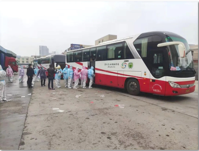 在接下來的日子里,這一支由12臺大巴、13名成員組成的支援團隊,每天從早上8:00開始,到寶安區(qū)各隔離酒店接送防疫醫(yī)護人員及相關(guān)工作人員至石巖街道各社區(qū)開展防疫工作,晚上22:00再將相關(guān)人員安全送回各隔離酒店。